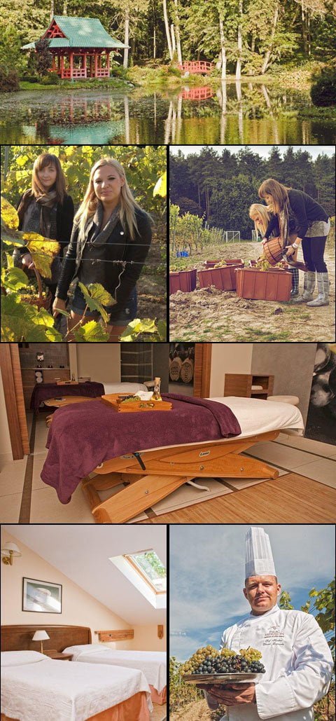 W Winnicy „Pałac Mierzęcin” można obserwować, jak dojrzewają owoce winogron. Te najlepsze pojawią się na naszym ciele podczas zabiegów odmładzających i relaksacyjnych w pałacowym spa. Specjalnie wyselekcjonowane grona uwalniają sprzyjające pielęgnacji antyoksydanty i witaminy podczas winnych kąpieli w łaźni. Maseczki, masaże i peelingi z użyciem owoców winorośli lub gotowego wina są nie tylko odprężające i przyjemne, ale także skuteczne w walce z problemami skórnymi. Winogrona wykorzystywane podczas zabiegów w spa są bogate w polifenole, które hamują proces starzenia się skóry, jednocześnie sprawiając, że odzyskuje swój dawny blask i piękny koloryt.