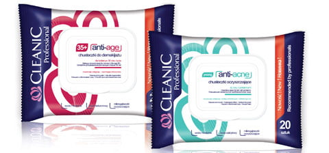 Na koniec dwa rodzaje chusteczek: Anti-Age i Anti-Acne. Chusteczki Anti-Age (9,99 zł/20 szt.) są przeznaczone dla kobiet po 35. roku życia. Nasączone wodą micelarną, umożliwiają skuteczne i delikatne oczyszczanie nawet intensywnego czy wodoodpornego demakijażu bez niebezpieczeństwa podrażnień. Wzbogacone kwasem hialuronowym poprawiają naskórkową i komórkową odnowę, dzięki czemu skóra dłużej pozostaje jędrna i elastyczna, a proces powstawania zmarszczek ulega spowolnieniu. Dzięki nim demakijaż można także wykonać w podróży lub w innych, niesprzyjających warunkach. Chusteczkami Anti-Acne (9,99 zł/20 szt.) zachwycą się natomiast młodsze miłośniczki nawilżanych preparatów do demakijażu. Profesjonalna włóknina nasączona płynem micelarnym delikatnie a zarazem skutecznie oczyszcza skórę z nadmiaru łoju i sebum. Zawarty w nich kwas salicylowy złuszcza wierzchnią warstwę skóry, odblokowuje i penetruje pory, zabijając przy tym bakterie. Natomiast wyciąg z wierzby ma działanie łagodzące. Zawartość d-panthenolu pomaga redukować zaczerwienienia.