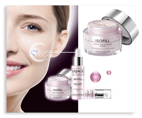 Kosmetyki z linii Isofill Uriage zawierają w swojej formule opatentowany bioaktywny kompleks ISO-3R. W połączeniu z wodą termalną Uriage aktywuje on 3 naturalne mechanizmy odpowiedzialne za młody wygląd skóry: