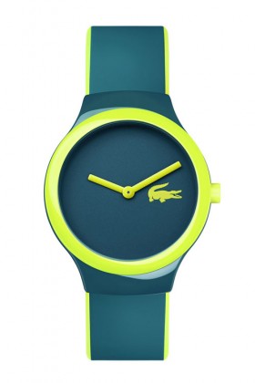 Cytrynowy, limonkowy, a może róż? To trzej bohaterowie prezentowanej kolekcji zielonego krokodyla. Oczywiście nie ma mowy o mono-kolorze, ponieważ Lacoste niezmiennie stawia na niebanalne łączenie barw. Każdy z zegarków zaprojektowano w dwóch odcieniach – ciemniejszym oraz jaśniejszym. Kolorem jaśniejszym pokryto pierścień, wskazówki, logo na tarczy oraz zapięcie i połowę paska. Mimo, że zajmuje mniejszą powierzchnię czasomierza jest zdecydowanie bardziej wyrazisty od barwy ciemniejszej, która pokrywa pozostałą część zegarka. Model 2020119 to kompilacja chwytającej wzrok limonki ze stonowaną zielenią. Tym samym, projektanci marki nie pierwszy raz połączyli kolory należące do tej samej rodziny, otrzymując w efekcie świetne zestawienie. Kolejny z zegarków – 2020120, łączy dwa wyjątkowo lubiące swoje towarzystwo odcienie – lekko pudrowy, ale intensywny róż oraz granat. Granat to również dominująca barwa ostatniego z prezentowanych modeli – 2020121. Tym razem jednak nie towarzyszy mu róż, a słoneczny, żółty kolor.