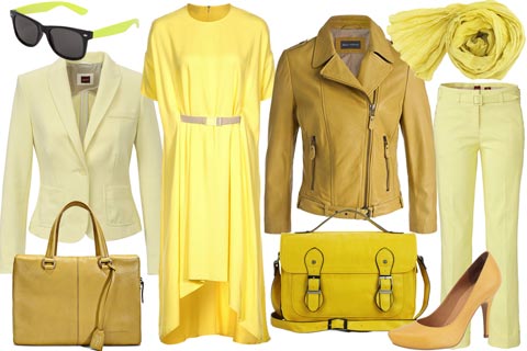 Bywa bardzo jasny, przepalony słońcem, pastelowy lub wyrazisty, niemal neonowy, niekiedy blisko mu do pomarańczowego lub musztardowego. Żółty kolor zdobywa wiosenno-letnią garderobę i zajmuje mocną pozycję w sezonowej palecie barw. Doskonale prezentuje się na ubraniach i dodatkach. Lubi niemal wszystkie rodzaje materiałów: od zwiewnego jedwabiu, przez wygodną bawełnę, po skórę. Dobrze wygląda solo lub z innymi kolorami, zwłaszcza z czernią.