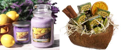 od lewej: świeca cytrynowo-lawendowa (Yankee Candle, 93 zł), olejki zapachowe Dr.Beta (11,87 zł/1 szt.)