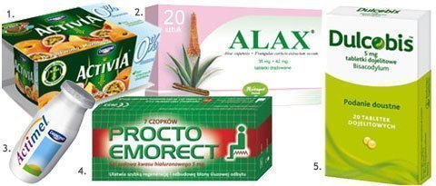 2) Alax preparat wskazany w zaparciach związanych z osłabieniem ruchów perystaltycznych jelit lub stanem skurczowym mięśni gładkich jelit (ok. 10 zł/20 draż.)
