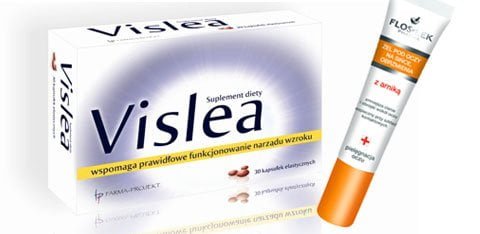 od lewej: suplement Vislea wspomagający prawidłowe funkcjonowanie wzroku (27 zł/30 kaps.), żel pod oczy z arniką na sińce i obrzmienia (Flos-Lek, 7 zł/15 ml)