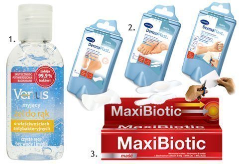 W wakacyjnej kosmetyczce powinny znaleźć się produkty, dzięki którym powstałe rany nie ulegną zakażeniu. Warto także mieć pod ręką antybakteryjny żel myjący. Nigdy nie wiadomo, kiedy się przyda! 😉