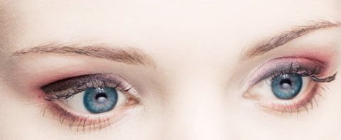 3. Nałóż biały cień Intensive nr 7 na górną powiekę. W wewnętrznych kącikach oczu nałóż najjaśniejszy odcień, w zewnętrznych najciemniejszy – grafitowy wypukły cień do powiek nr 12. Przy linii rzęs namaluj grubą czarną kreskę, którą następnie rozetrzyj. Połącz ją z ciemnym cieniem, aby oko było „przydymione”. Na zewnętrzne kąciki nałóż czerwony lub ciemnoróżowy cień. Pędzelkiem dokładnie rozetrzyj granice cieni, aby nie było widocznych krawędzi. Dolną linię rzęs również pomaluj grafitowym cieniem. Na rzęsy nałóż mascarę pogrubiającą Simple Beauty. Brwi przeczesz szczoteczką i delikatnie przyciemnij kredką do brwi.