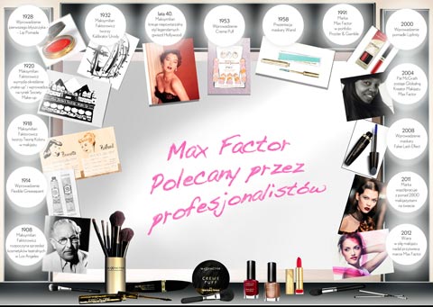 Maksymilian stworzył wiele innowacyjnych produktów i technik makijażu. Dzięki zasługom dla przemysłu filmowego w 1929 roku został uhonorowany Oskarem. Tworząc Teorię Koloru oraz Kalibrator Urody, Faktorowicz wydobył unikalne piękno kobiet. Wykreował wizerunki legendarnych gwiazd Hollywood, takich jak Jean Harlow, Marlena Dietrich czy Ava Gardner. W końcu uznał, że czas podzielić się swoimi sekretami z milionami kobiet na całym świecie – wiedział bowiem, że człowiek nie rodzi się z poczuciem stylu, ale tworzy go sam. Tak powstała marka Max Factor. Po śmierci legendarnego założyciela firma nadal prężnie się rozwijała pod kierownictwem jednego z synów.