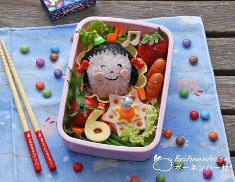 Bento, to nie tylko smak, ale i wygląd potrawy oraz jej serwowanie w pudełku. Oczywiście można tak od niechcenia wrzucić mięcho z ryżem do pudełka, dorzucić kawałek zielska i marchewkę. Pewnie, czemu nie? Ale o ileż lepiej się je, jeśli wszystko jest ułożone w odpowiednim miejscu, marchewka ma kształt kwiatuszka, gwiazdki lub choćby listka, „mokre” składniki są odseparowane od suchych liśćmi sałaty, a jajko uśmiecha sie w czapeczce-wykałaczce! Własnie dzięki niezliczonym możliwosciom dekorowania potraw (i nieskończonej inwencji Japończyków), bento używane jest jako oręże w walce z niejadkami. Bo któż oparłby się kolorowemu ryżowi z kwiatuszkami, w kształcie pandy czy ulubionego bohatera kreskówki, napisowi wyciętemu z sera żółtego lub parówce-ośmiorniczce?