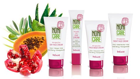 Sercem kosmetyków Noni Care jest sok pozwyskiwany z owoców noni, który posiada wyjątkowe właściwości opóźniające występowanie objawów starzenia się skóry. W skład serii tych ekologicznych kosmetyków wchodzą m.in. jagody acai, mango, aloes i rumianek. Po użyciu produktów Deluxe Anti-Ageing Care skóra staję się wyraźnie wygładzona, jędrniejsza i promienna.