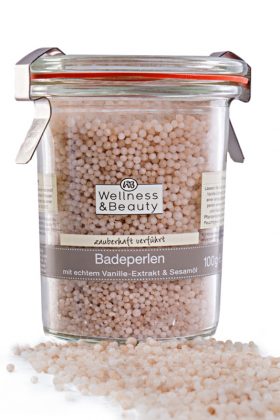 - Wellness & Beauty perełki do kąpieli wanilia & sezam, cena: 9,99 zł/100 g