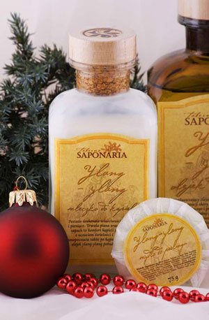 Specjalnie na święta Saponaria poleca linię ylang ylang: mleczko do kąpieli i pod prysznic (32 zł), olejek do kąpieli (58 zł), mydło do peelingu (14 zł). Taki zestaw pozwoli obdarowanej osobie we własnej łazience poczuć się jak w orientalnym spa;-)