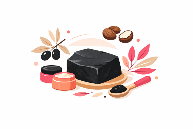 Główne składniki czarnego mydła obejmują: – Olej roślinny – najczęściej wykorzystywany jest olej palmowy, kokosowy lub z ziaren kakaowca, które stanowią podstawę receptury. – Masło shea – istotny komponent, szczególnie w czarnym mydle afrykańskim, zapewniający właściwości nawilżające i odżywcze. – Popiół roślinny – otrzymywany ze spalania łusek kakaowca, łupin palmowych lub innych roślin, odpowiada za alkaliczność produktu i jego charakterystyczny kolor.