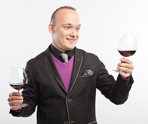 Na zdjęciu Andrzej Strzelczyk, Mistrz Polski Sommelierów 2013, ekspert Żabki ds. wina.