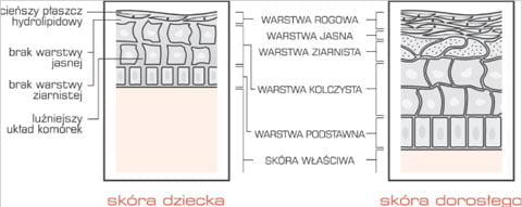 Skóra dziecka różni się budową i fizjologią od skóry dorosłego? Jest cieńsza, zawiera mniej lipidów, ma luźniejszy układ komórek, wykazuje wzmożoną przeznaskórkową utratę wody, a jej mechanizmy termoregulacji są niedojrzałe. Skóra twarzy jest wyjątkowo delikatna w porównaniu ze skórą innych części ciała. Jest mniej unaczyniona. Charakteryzuje się cieńszą warstwą rogową, co sprawia, że drobnoustroje łatwiej przez nią przenikają. Jest szczególnie narażona na działanie niekorzystnych czynników zewnętrznych takich jak zimno, wiatr i promienie UV, które sprzyjają jej podrażnieniu, wysuszeniu i zakażeniom. Dlatego też zimą skóra twarzy dziecka potrzebuje szczególnej pielęgnacji i ochrony!